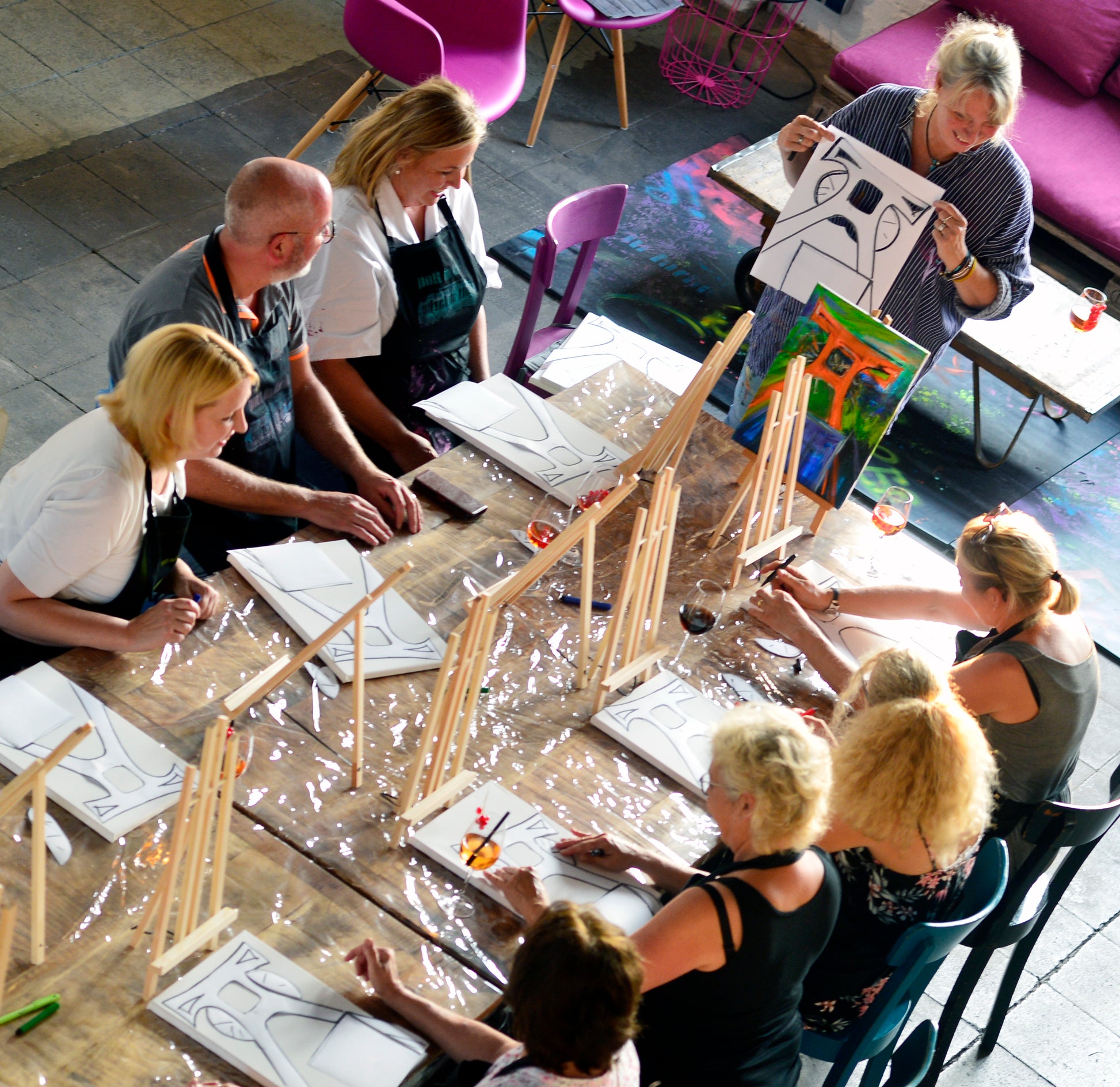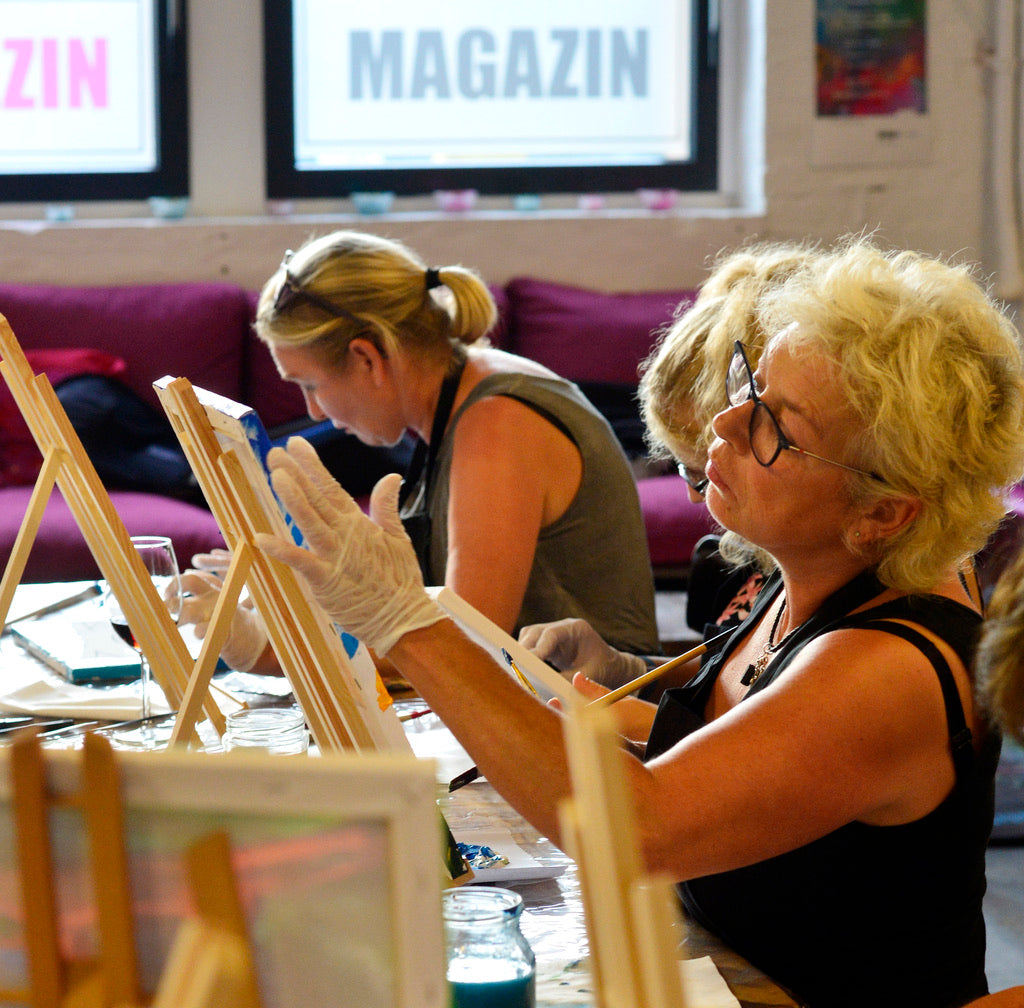 Spaß und Freude und neue Inspirationen sind garantiert. Unter künstlerischer Leitung lernst du alles über Farben und Techniken für dein eigenes Bild.